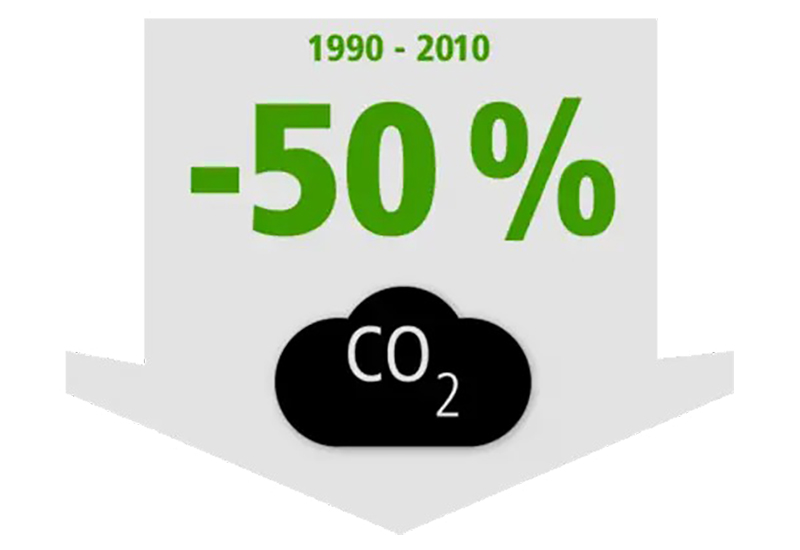 Source : Stabilisation des surfaces de circulation – bilan écologique comparatif des superstructures, auteur : Siegrun Kittelberger, PE International AG, pour le compte de l’Association du béton, Bonn, août 2011, exemple de construction « superstructure de chemin ». +40 % en Suisse, 30 % en Europe, 30 % en Chine.